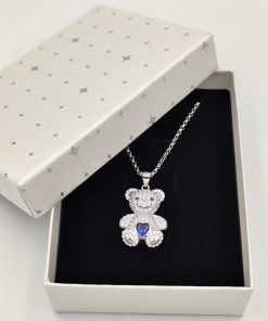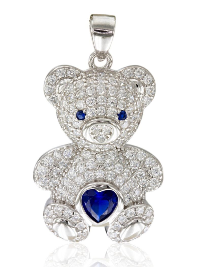 - Material del colgante: Plata de ley acabada en rodio y circonitas blancas y azules.