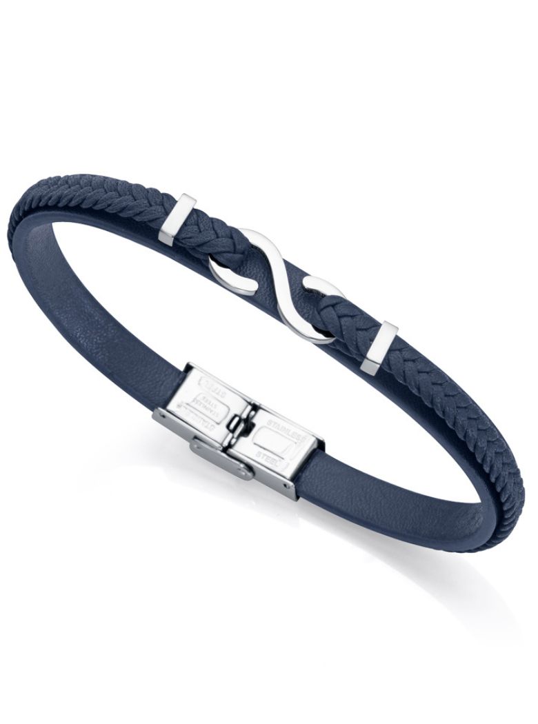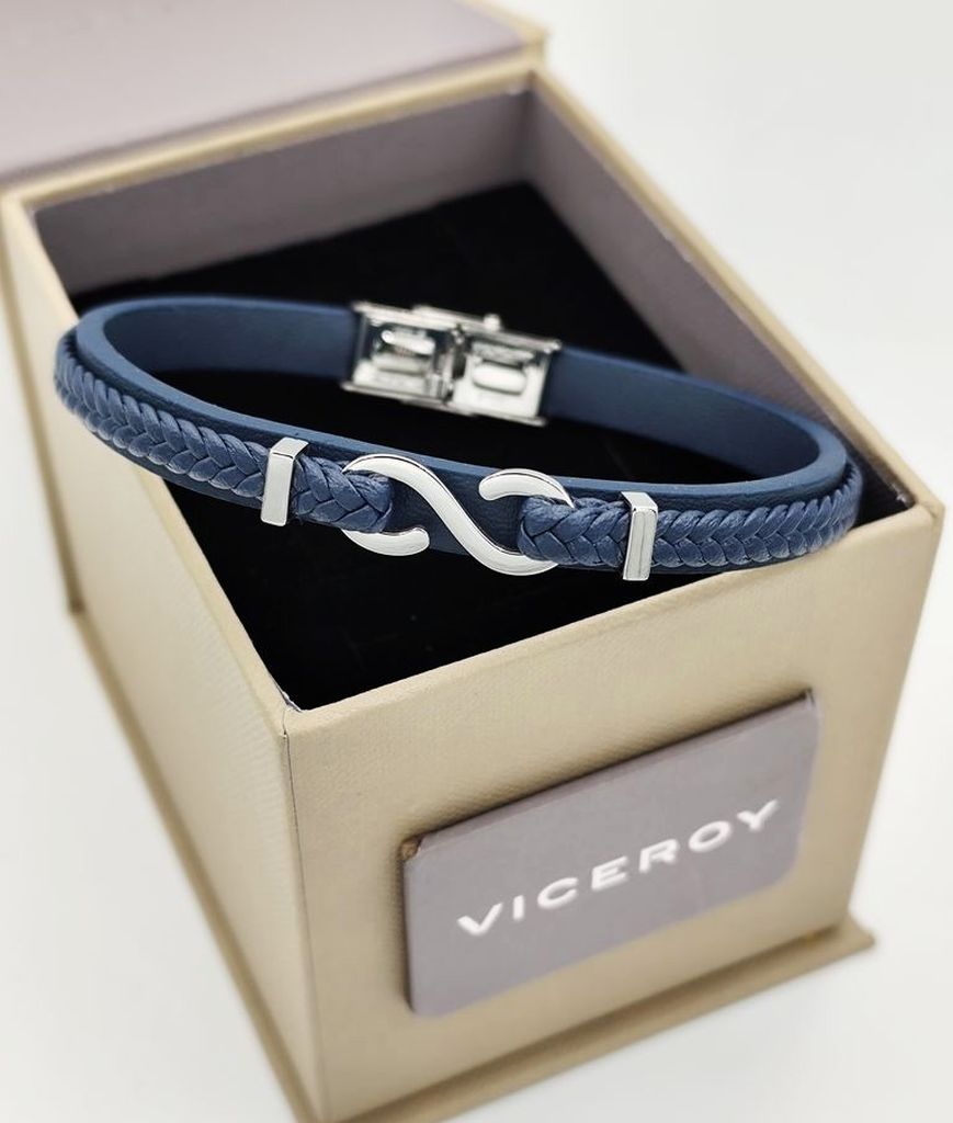 Déjate cautivar por esta pulsera Viceroy de acero y piel azul con motivo infinito.