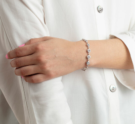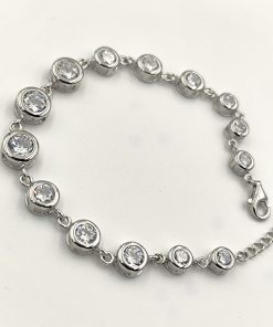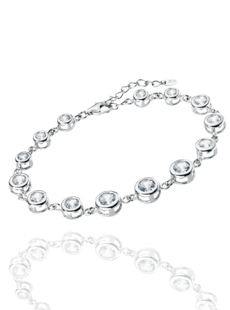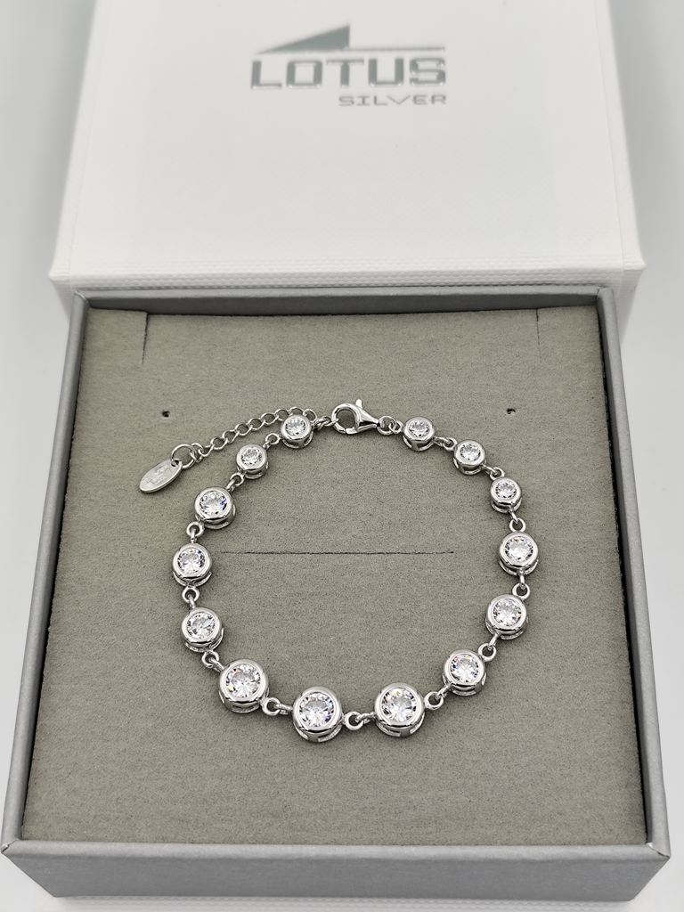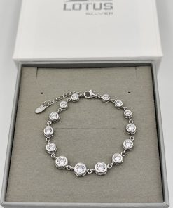 Pulsera Lotus Silver fabricada en plata de ley y circonitas blancas en tres medidas.